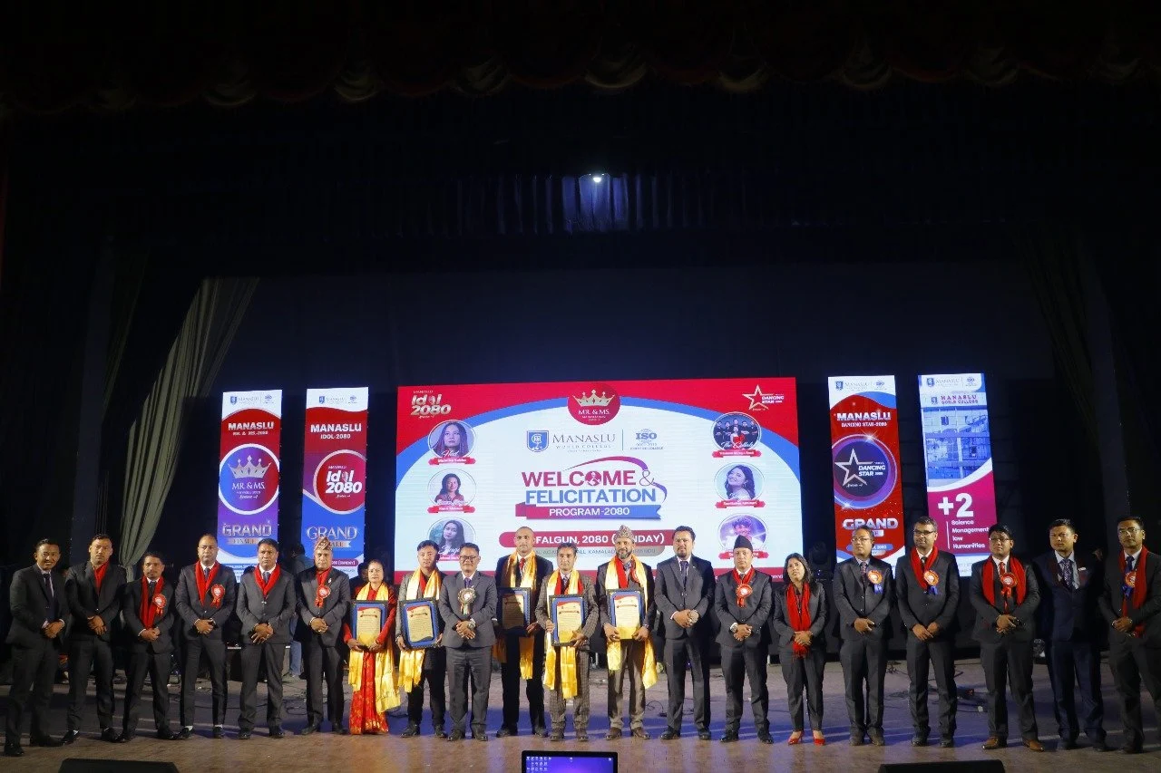 काठमाडौँ । चाबहिलमा अवस्थित मनास्लु वर्ल्ड कलेजले ५ जना विशिष्ट व्यक्तित्वहरूलाई सम्मान गरेको छ । मनास्लुले स्वागत तथा विशिष्ट व्यक्तित्व सम्मान कार्यक्रममा कक्षा ११ र १२ मा उत्कृष्ट नतिजा सहित उत्तीर्ण विद्यार्थीहरूलाई सम्मानका लागि नेपाल प्रज्ञा प्रतिष्ठानको हलमा आयोजित कार्यक्रममा उनीहरूलाई सम्मान गरिएको हो ।