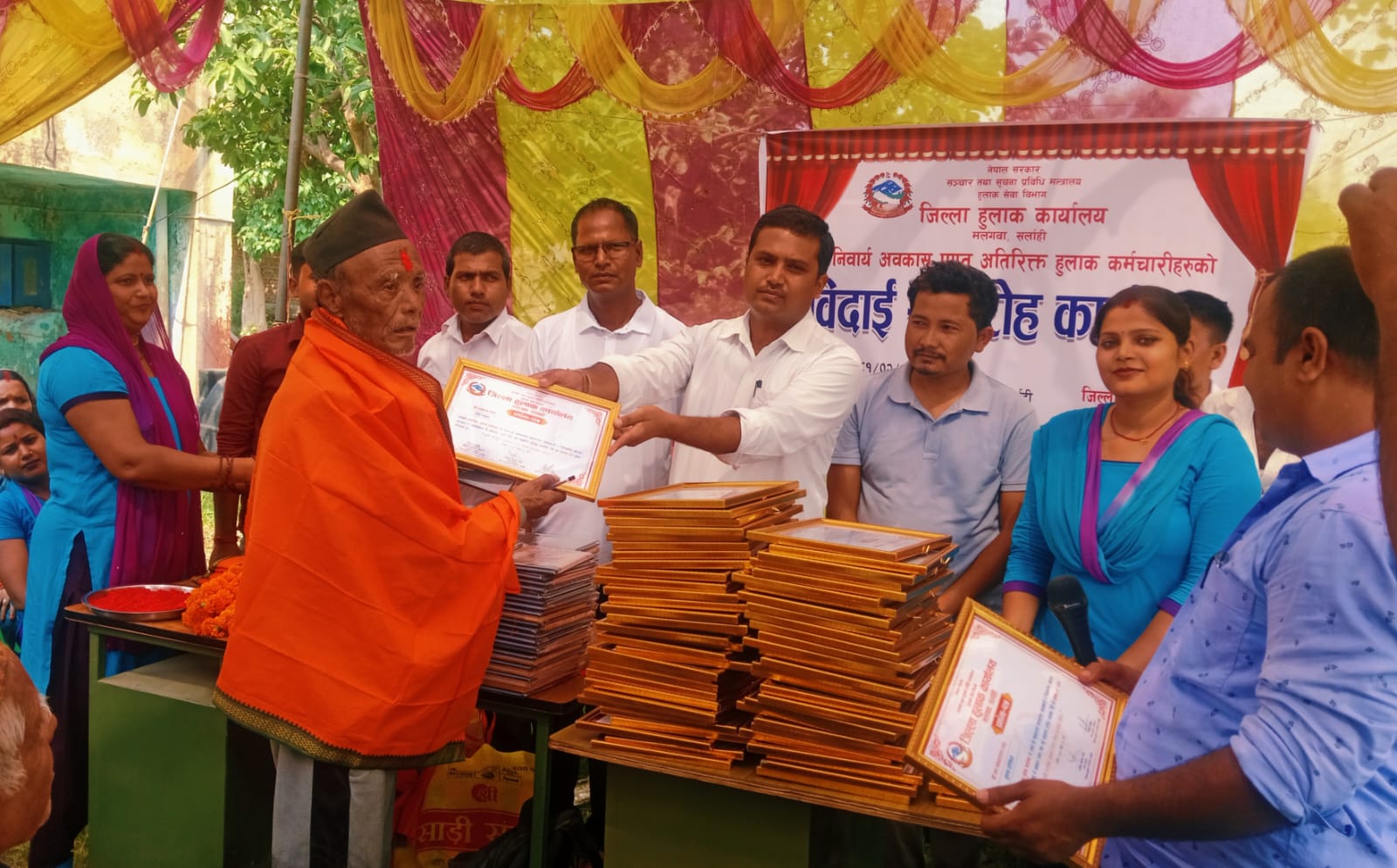 सदरमुकाम मलंगवास्थित कार्यालयको प्रांगणमा बिहिवार आयोजित बिदाइ समारोह कार्यक्रममा उनीहरूलाई विदाई गरिएको हो।