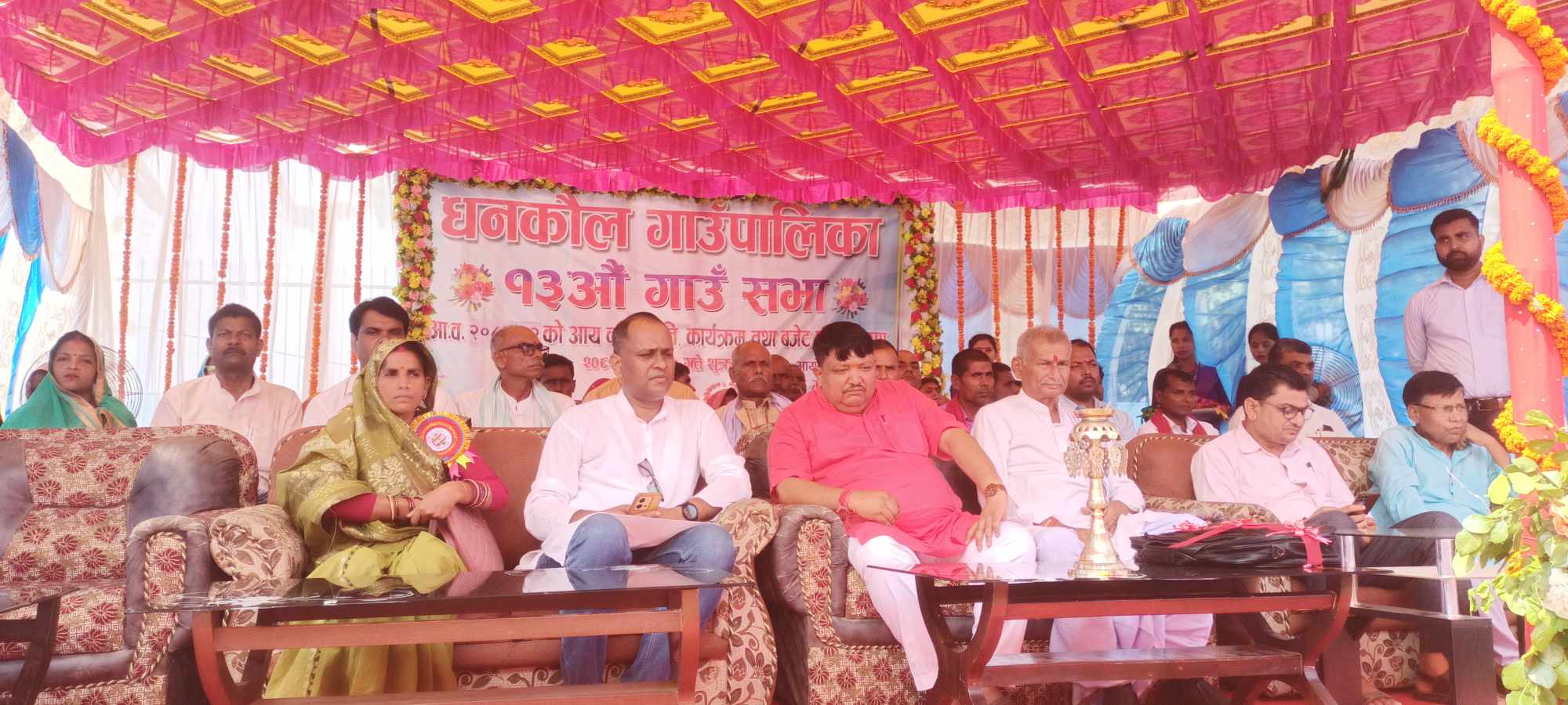 १३ औं गाउसभाको प्रमुख अतिथी मधेश प्रदेशका प्रदेश सभासदस्य तथा पुर्व स्वास्थ्य मन्त्री बिरेन्द्र प्रसाद सिंह तथा गाउपालिका अध्यक्ष रामआश्रय साहले सामुहिक रुपमा पानसमा बति बालेर १३ औं गाउसभाको उदघाटन गर्नु भएको थियो ।