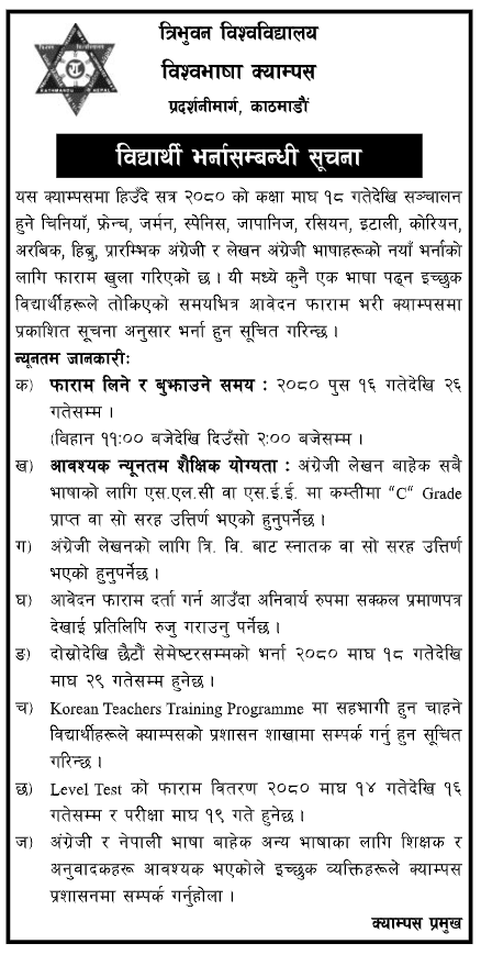 विश्वभाषा क्याम्पसमा नयाँ भर्ना खुल्यो, कुन कुन भाषा पढाइन्छ ?