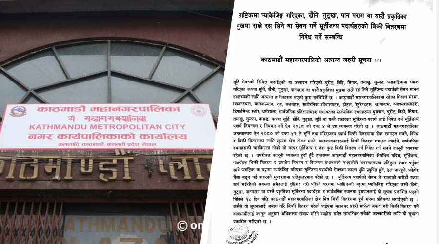 काठमाडौंमा आजदेखि प्लास्टिकको खोल भएका सुर्तीजन्य पदार्थ निषेध