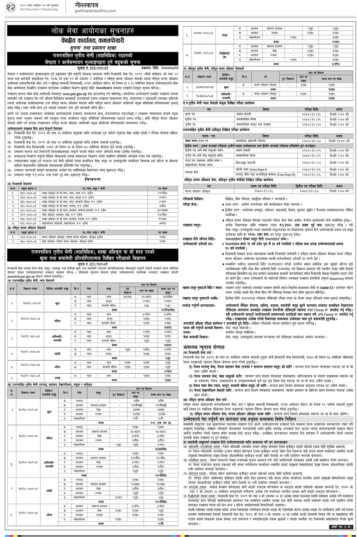 लोकसेवाले खुलायो अधिकृत पदमा विज्ञापन