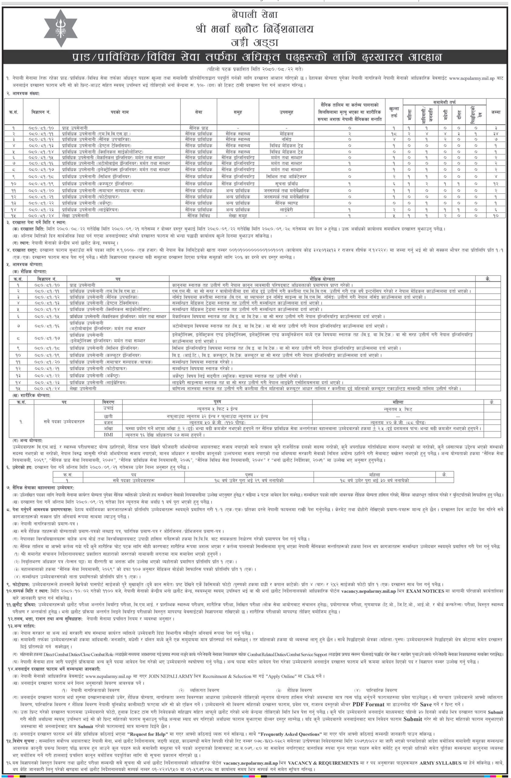 नेपाली सेनाका प्राविधिक अधिकृत पदमा भर्ना खुल्यो