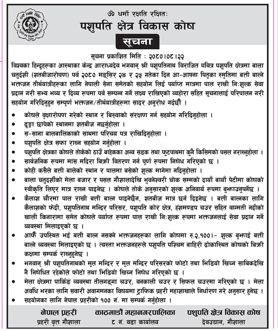 बाला चतुर्दशीमा पशुपतिमा आउने भक्तजनले पालना गर्नुपर्नेछ १३ बुँदे नियम