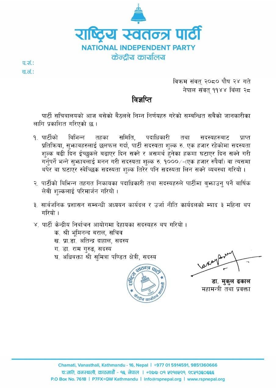 गौशाला २६ भन्दै पहिचान खुलाउने कार्यकर्तालाई रास्वपाले गर्यो निलम्बन