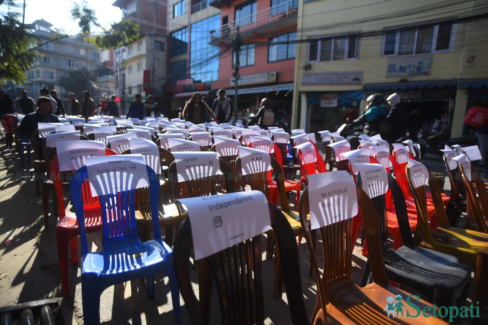 सडकमा खाली कुर्सी राखेर नेविसंघको विरोध प्रदर्शन