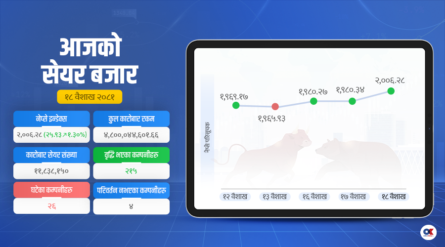 सेयर बजारले २ हजार अंक नाघ्यो, कारोबार दोब्बर
